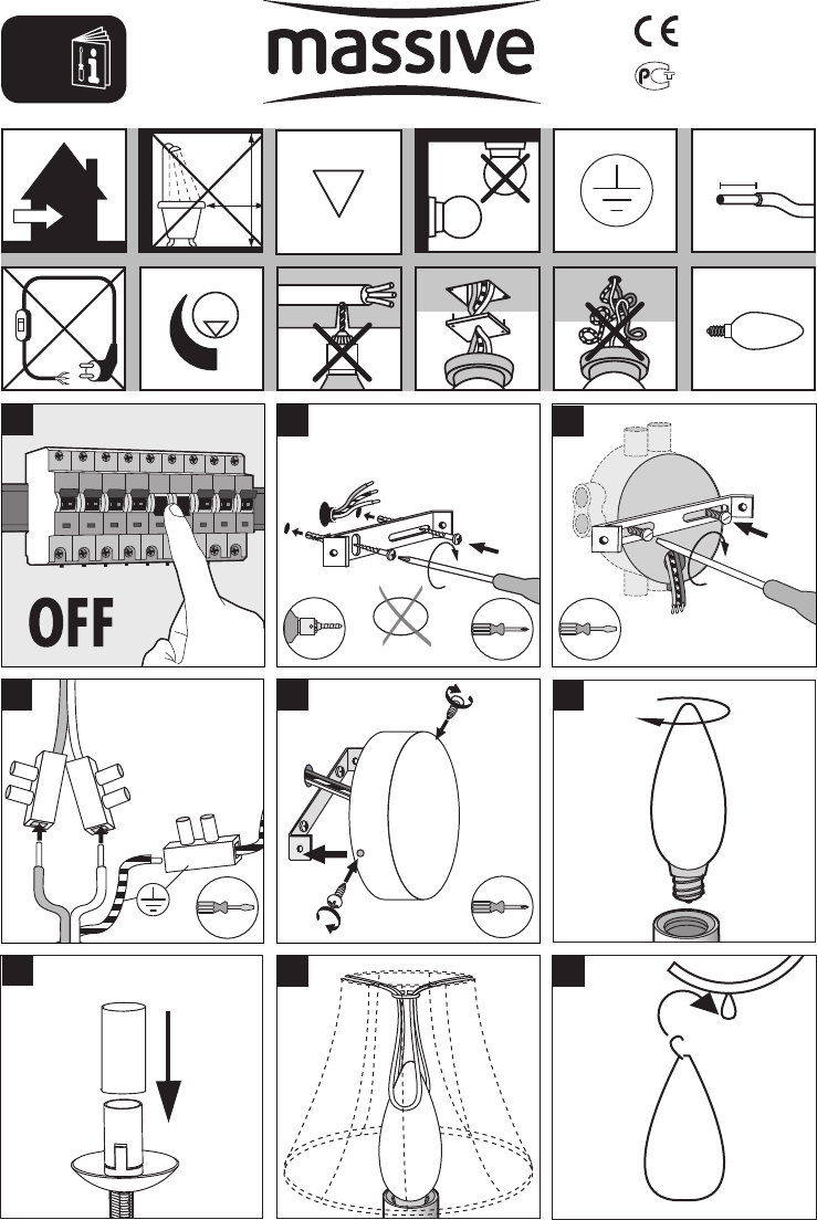 1ADistributorSatenrozen 132550 Kontich – BelgiumMD0 001 764Last update: 13/07/10A 46R© Copyright MassiveIP203m2,25mF57 8 E14Max. 40W8mm2b36142aNL
